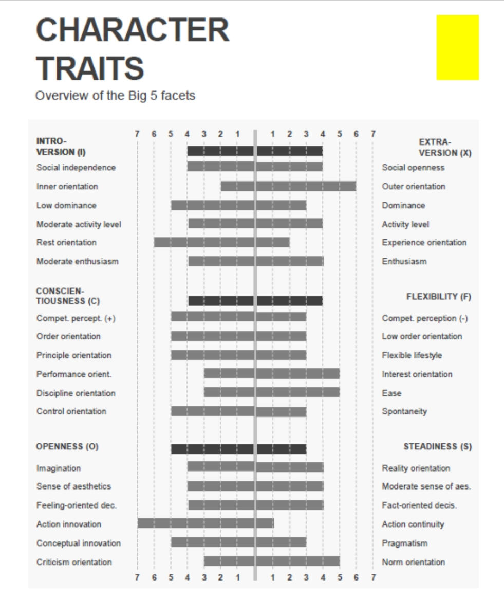 The LINC PERSONALITY PROFILER® represents a new approach in the area of personality analysis and development. It is a tool that is based on the most psychologically sound models and creates a very differentiated profile of character traits, motives and skills.