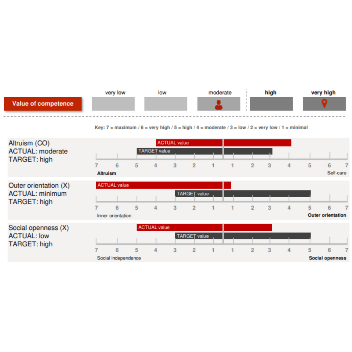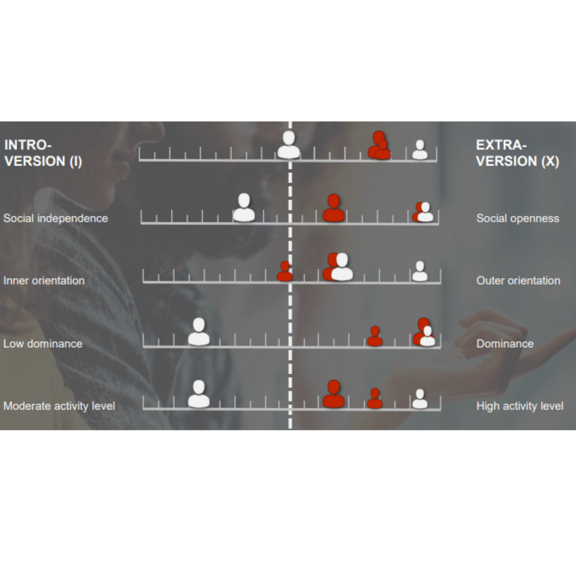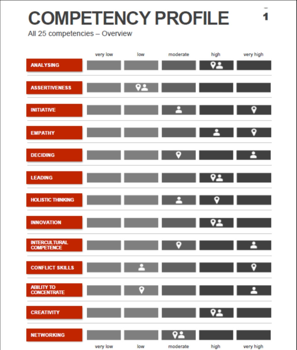 The LINC PERSONALITY PROFILER® represents a new approach in the area of personality analysis and development. It is a tool that is based on the most psychologically sound models and creates a very differentiated profile of character traits, motives and skills.